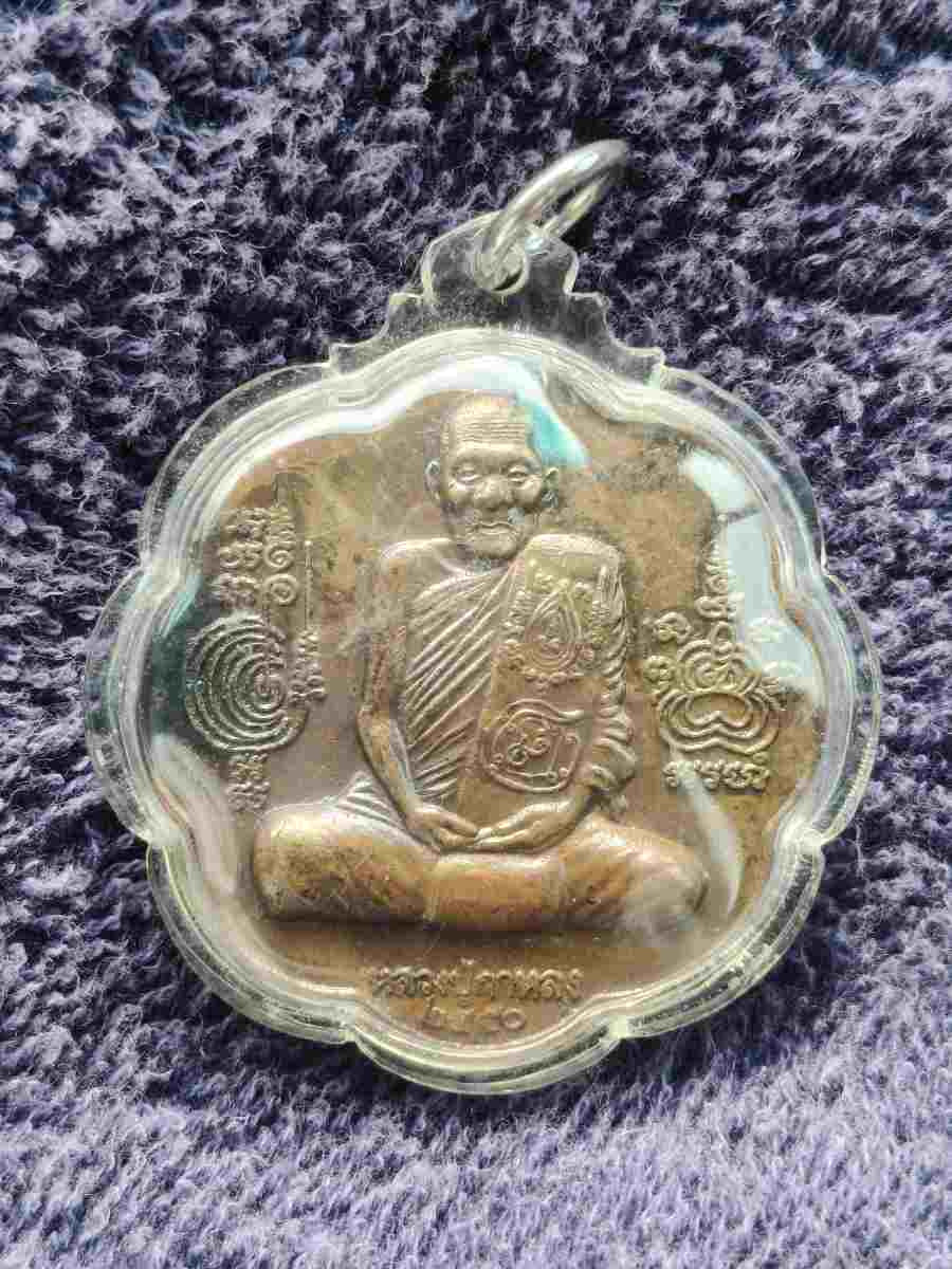 เหรียญยันต์ตะกร้อหลวงปู่กาหลง เขี้ยวแก้ว รุ่นไตรมาส ปี 50 เนื้อทองแดง จ.สระแก้ว บล็อควงเดือน