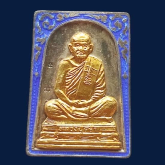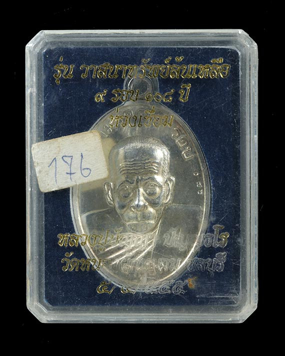 พระชัยวัฒน์สุคโต เนื้อนวะโลหะ ปี 2534 หลวงปู่ม่น วัดเนินตามาก ชลบุรี พร้อมกล่องเดิม |