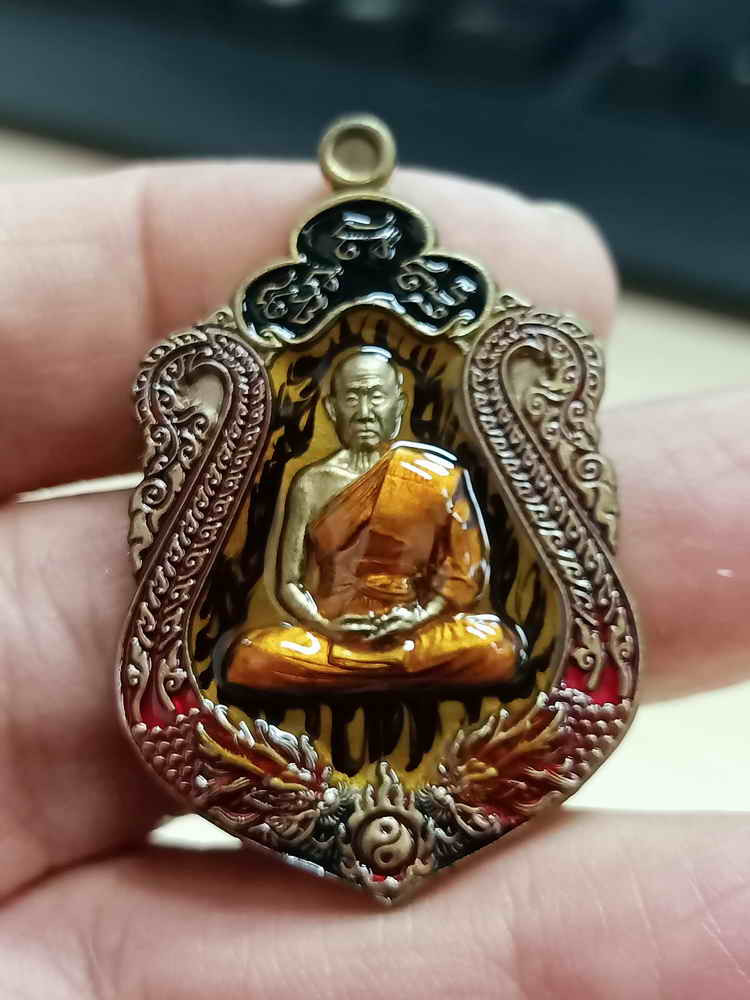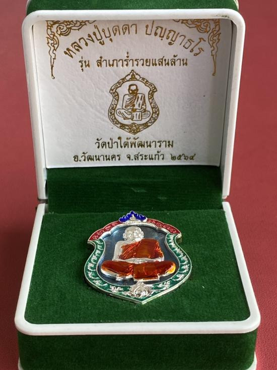 เคาะเดียวแดง หลวงปู่บุดดา รุ่น สำเภาร่ำรวยแสนล้าน เนื้อ นวะหน้ากากเงินขอบเงินลงยา |