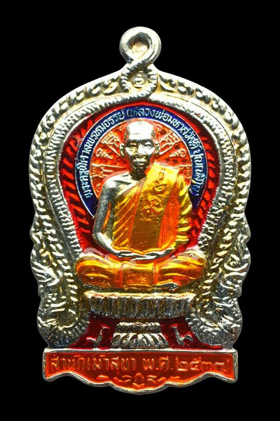 เหรียญห่วงเชื่อมมหาสีหนาท หลวงปู่บุญมา สำนักสงฆ์เขาแก้วทอง เนื้อเงินลงยา เลข 60 เคาะเดียว |