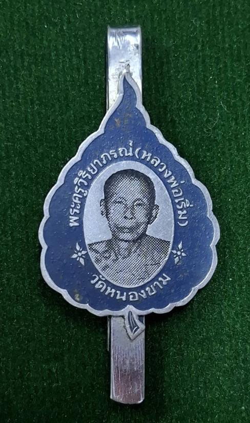 แหนบหลวงพ่อคง วัดซำป่างาม เนื้ออัลปาก้าลงยาสีน้ำเงิน ไม่ทราบปี |