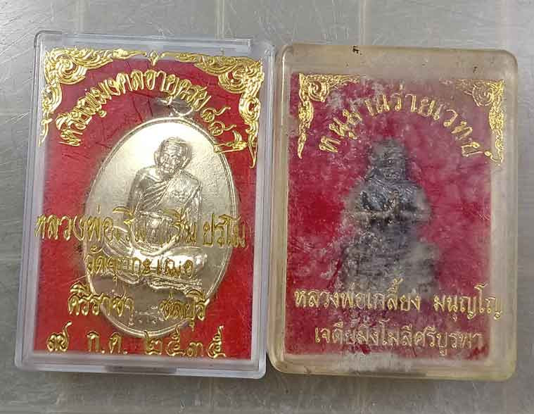 เหรียญเจริญทรัพย์ หลวงพ่อเริ่ม วัดจุกเฌอ เนื้ออัลปาก้า ปี35 กล่องเดิม + หนุมานร่ายเวทย์ หลวงปู่เกลี้ยง มนุญโญ วัดเนินสุทธาวาส จ.ชลบุรี (ก้นอุดผง/ตอกโค๊ด) กล่องเดิม |