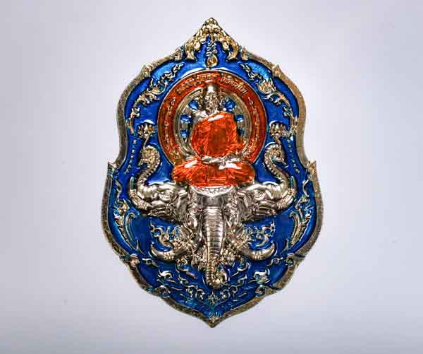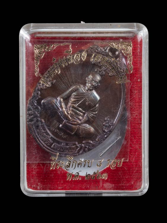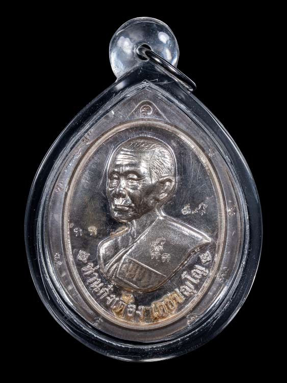 ปรกใบมะขาม เนื้อเงิน ที่ระลึกสร้างโรงพยาบาล รุ่น เมตตา หลวงปู่ม่น วัดเนินตามาก ชลบุรี กล่องเดิม |