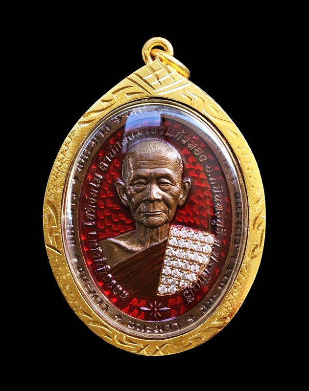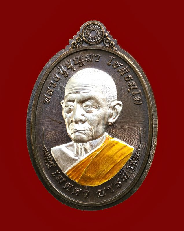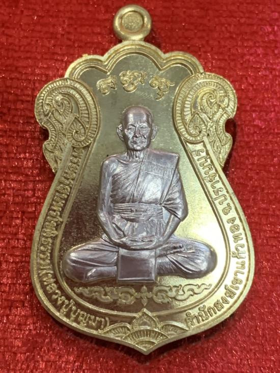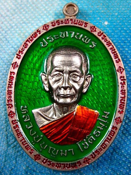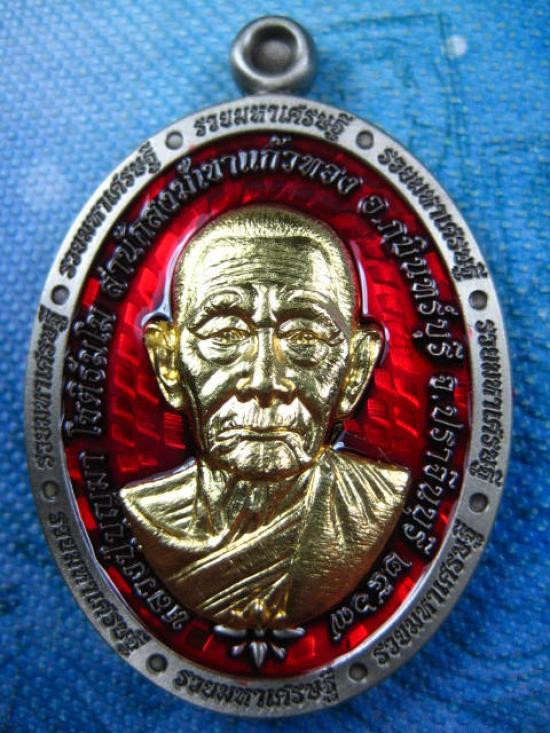 เหรียญรุ่น รวยมหาเศรษฐี หลวงปู่บุญมา โชติธัมโม เนื้ออัลปาก้าซาติน ลงยาแดง หน้ากากทอง พร้อมกล่องเดิมครับ (---A77---) |
