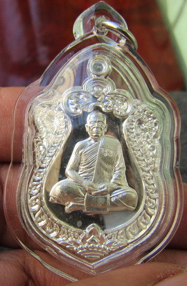 หลวงพ่อแฟ้มวัดป่าเนื้อเงินหน้ากากทองคำพิมพ์เล็กเคาะเดียวแดง |