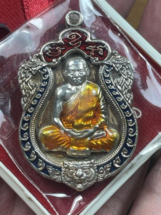 เหรียญเงินลงยาแดงหลวงพ่อสวัสดิ์หนัก17.9กรัมสภาพสวยพร้อมกล่องเดิมเนื้อเงิน99% |