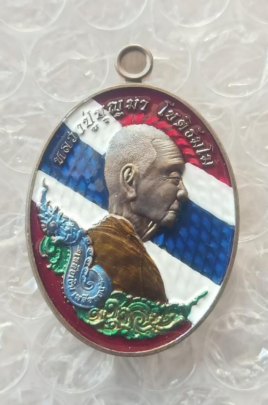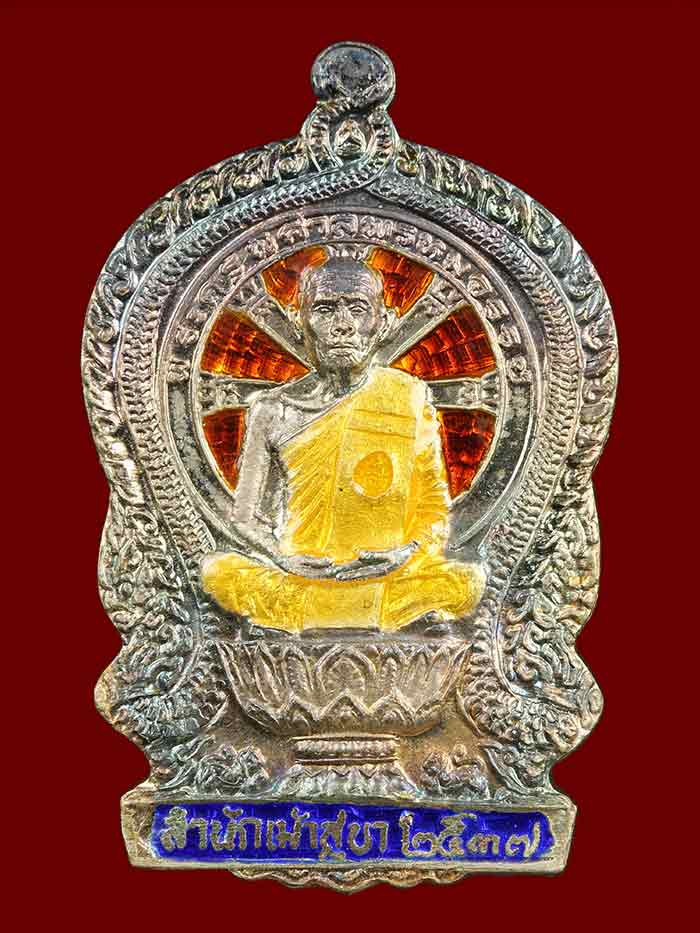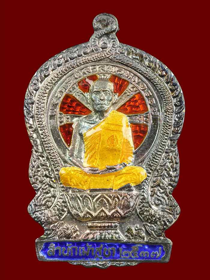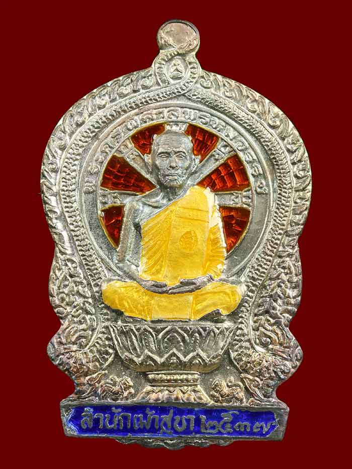 วัดใจ เหรียญนั่งพาน เนื้อเงินลงยา3สี รุ่น1 หลวงพ่อสวัสดิ์ วัดเม้าสุขา หมายเลข81 |