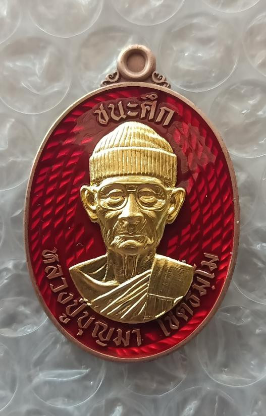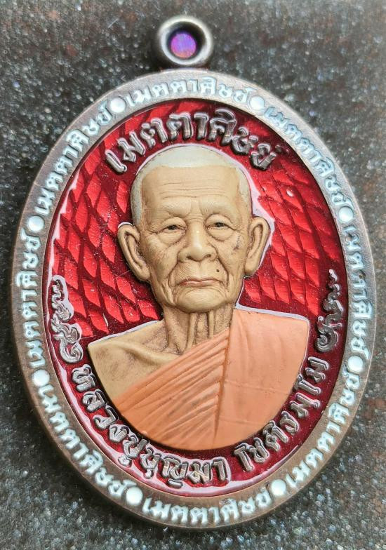 เหรียญ"เมตตาศิษย์"ที่ระลึกครบ๗รอบ หลวงปู่บุญมา โชติธัมโม วัดเขาแก้วทอง จ.ปราจีนบุรี เนื้อนวะโลหะ คุ้ยพื้นลงยาแดง หน้ากากเพ้นท์ หลังหลวงพ่อโสธร หมายเลข ๓๙ พร้อมกล่องกำมะหยี่ พระสวยมากคับ |