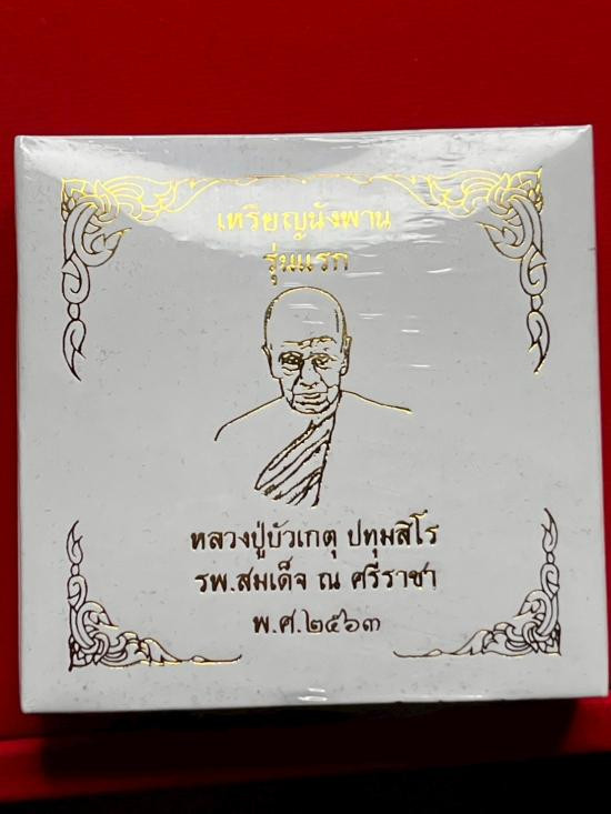 เคาะเดียวแดง เหรียญนั่งพาน รุ่นแรก หลวงปู่บัวเกตุ ปทุมสิโร 1กล่อง มี 2 องค์ ไม่แกะซีล |