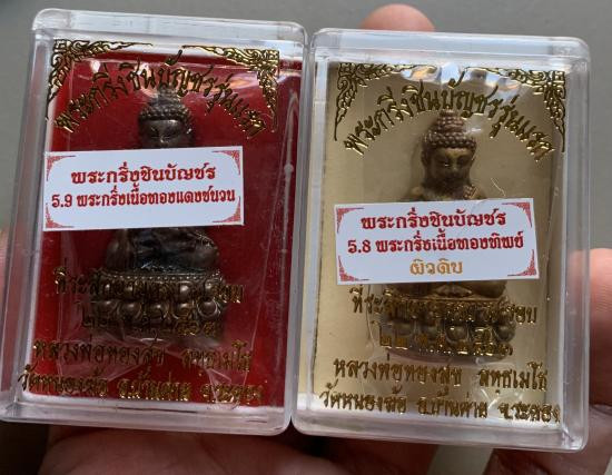 วัดใจ40 พระกริ่งชินบัญชร รุ่นแรก เนื้อทองแดงชนวน และเนื้อทองทิพย์ผิวดิบ หลวงพ่อทองสุข วัดหนองฆ้อ จ.ระยอง รวม2องค์กล่องเดิม |