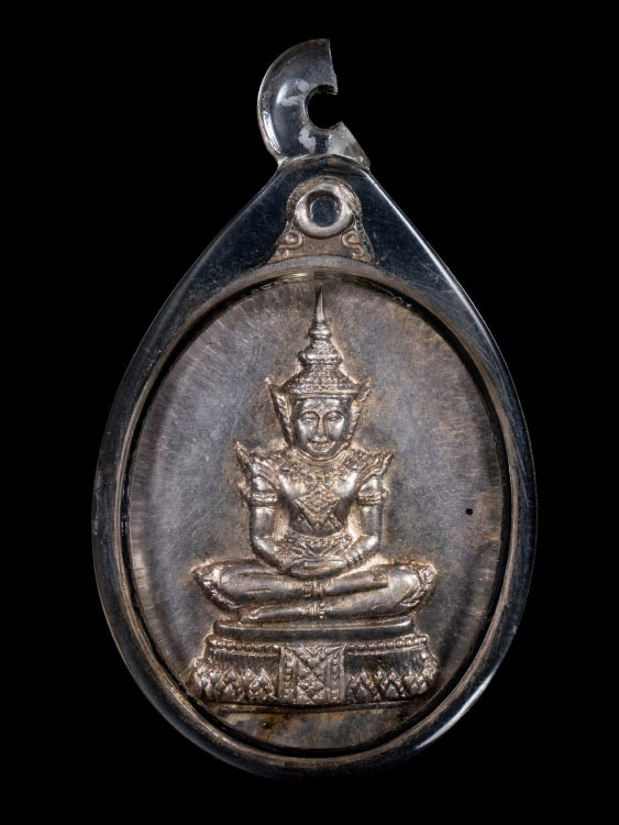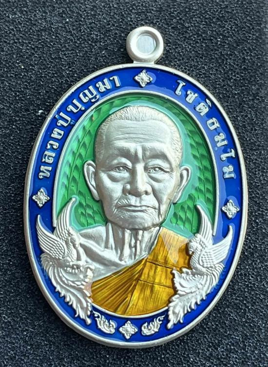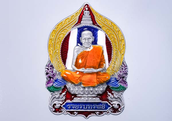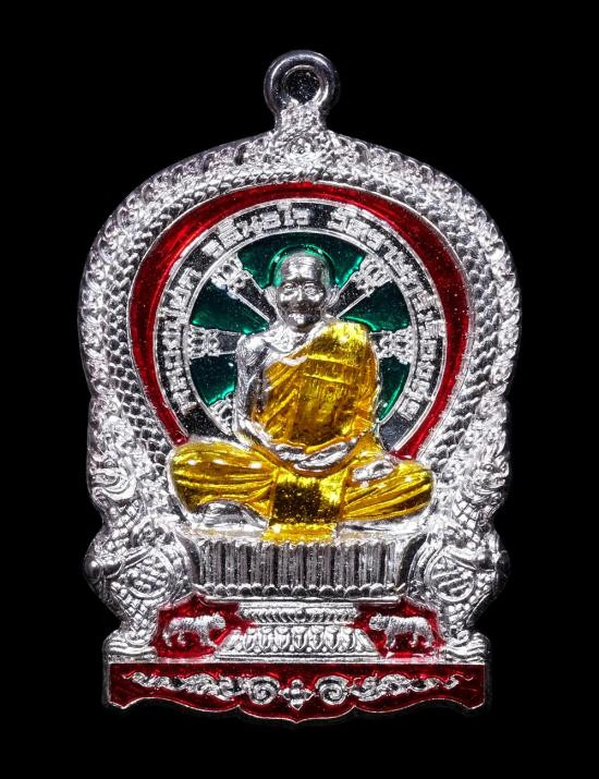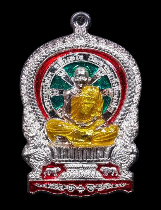 เหรียญนั่งพานสำเภาทอง ไตรมาส 58 เนื้อเงินลงยา หลวงปู่ฮก รตินธโร วัดราษฏร์เรืองสุข จ.ชลบุรี หมายเลข 1112 มีกล่อง แดงเคาะแรก |