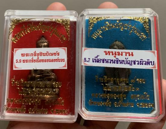 วัดใจ40 พระกริ่งชินบัญชร รุ่นแรก เนื้อทองแดงชนวน และ หนุมานชินบัญชรรุ่นแรกเนื้อชนวนชินบัญชร หลวงพ่อทองสุข วัดหนองฆ้อ จ.ระยอง รวม2องค์กล่องเดิม |