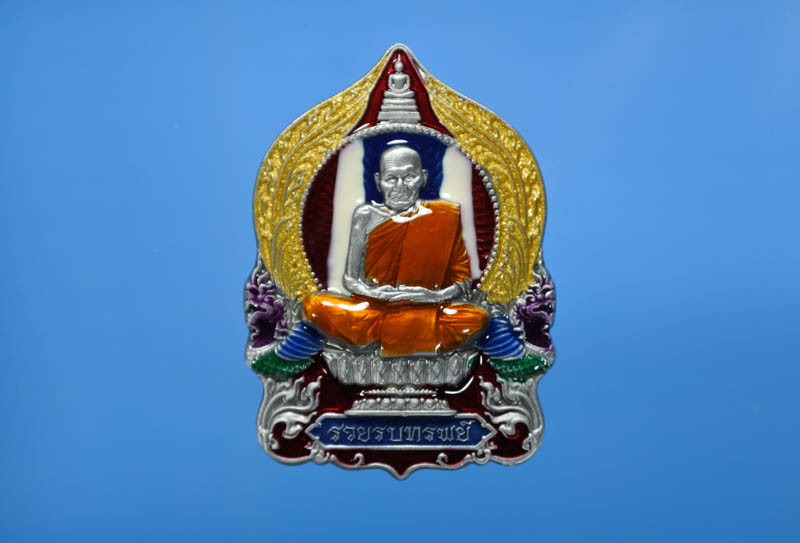 เหรียญพุ่มข้าวบิณฑ์(หน้าวัว)เงินลงยาสีธงชาติ หลวงปู่ม่น วัดเนินตามาก ปี2534 จ.ชลบุรี |