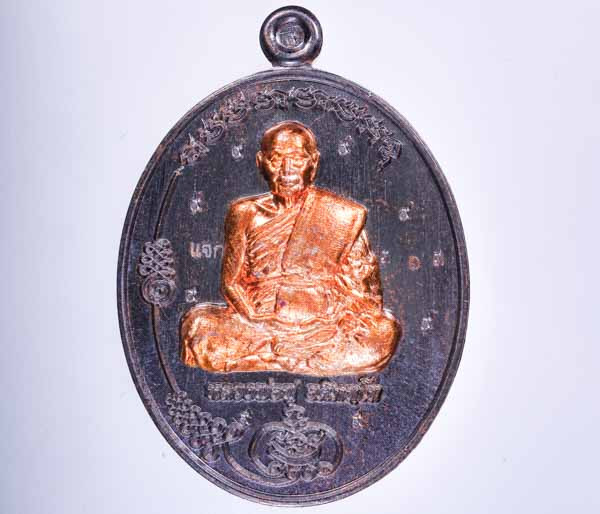 เหรียญขี่ไก่หลวงปู่คร่ำ วัดวังหว้า รุ่นประทานพร เนื้อทองแดงกระไหล่ทอง อ.แกลง จ.ระยอง |