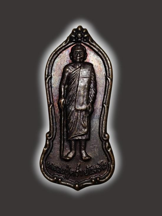 A4437.เหรียญยืนหลวงปู่คร่ำเสาร์ 5 เนื้อทองแดงรมดำ ปี 2537 วัดวังหว้า จ.ระยอง |
