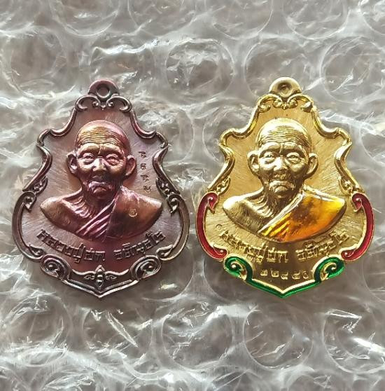 วัดใจ 100 เหรียญเสมารวยทันใจ หลวงพ่อรวย วัดมาบตาพุด จ.ระยอง ปี 2565 ชนวนโบราณ ลงยาแดง ขอบ จีวร หมายเลข 122 กล่องเดิม