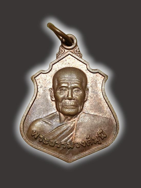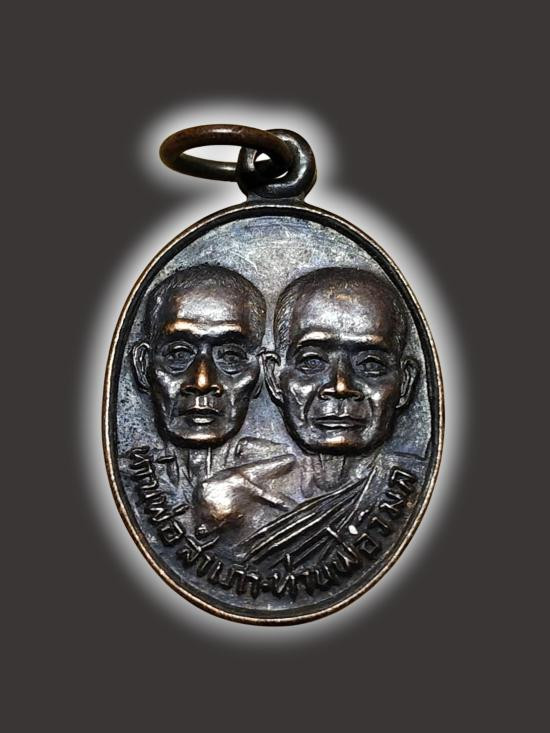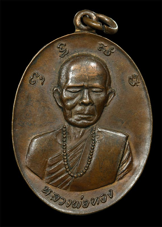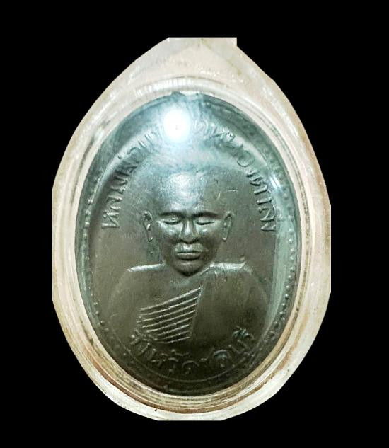 เหรียญหลวงพ่อเอีย วัดบ้านด่าน ปี พ.ศ. 2521 เนื้อทองแดงรมน้ำตาล สโมสรไลออนส์ปราจีนบุรีสร้างถวาย |