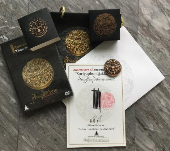 เหรียญสุริยะภูมิจักรวาลผลงานอาจารย์ถวัลย์ ดัชนี เนื้อ บรอนซ์ อุปกรณ์ครบ เลข 3 หลัก |