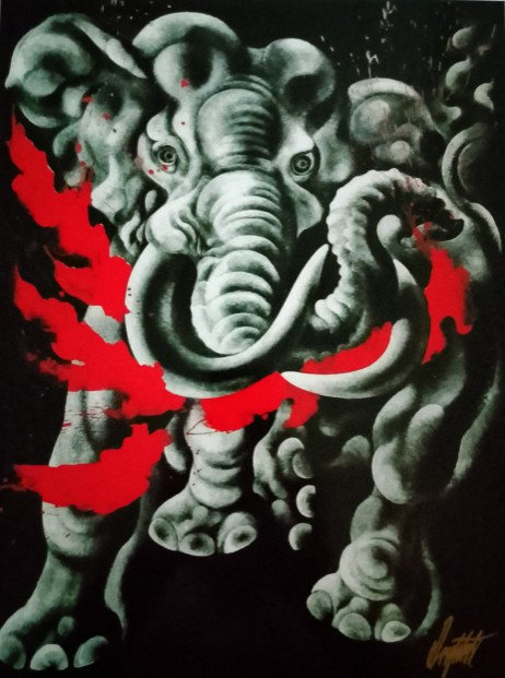 *~ภาพช้างนพสุบรรณ~ขออนุญาติ อ.ถวัลย์ ดัชนี แบ่งปันภาพพร้อมลายเซ็นสดสีทอง หายากที่มีเซ็นสด~ อ.ถวัลย์ ดัชนี ศิลปินระดับโลก ขนาดโปรเตอร์ 30x43ซม.~แบ่งปันนักสะสมที่ชอบงานศิลป์~ฝีแปรงแบบเฉียบพลัน ~ |