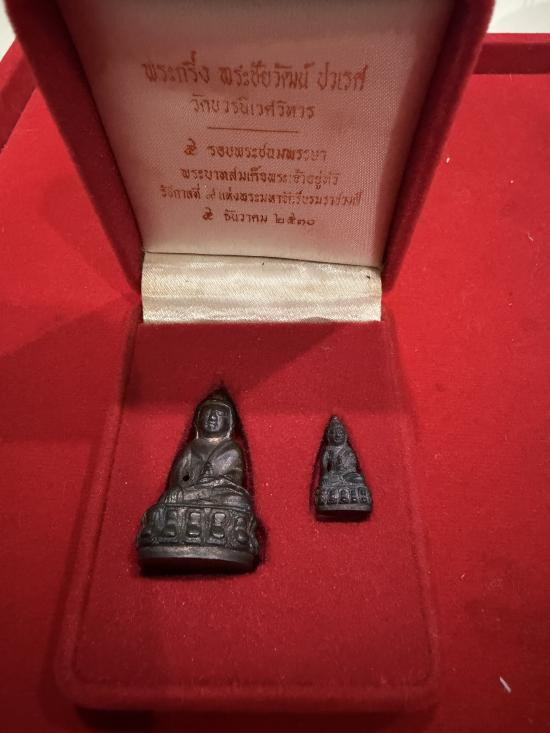 พระกริ่ง ปวเรศ + พระชัยวัฒน์ ปวเรศ วัดบวรนิเวศวิหาร เนื้อนวะ ปี 2530 วัดบวรนิเวศวิหาร ปี 2530 เนื้อนวะ เต็มสูตร มีหน้าตาสวยงาม ผิวน้ำทองสวยๆ ยกกล่องเดิมๆ + บัตรรับรอง G-PRA |