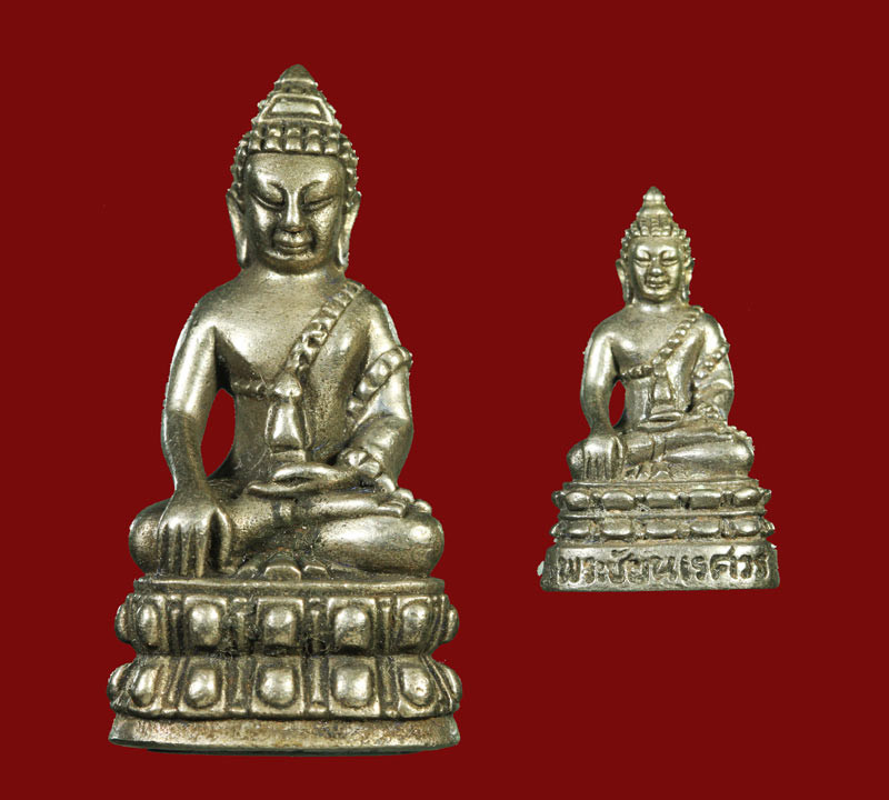พระพุทธนิรโรคันตรายชัยวัฒน์จตุรทิศ พระชัยสี่มุมเมือง พิมพ์หน้าใหญ่ท้องขีด 3 โค๊ต ปี2511 |