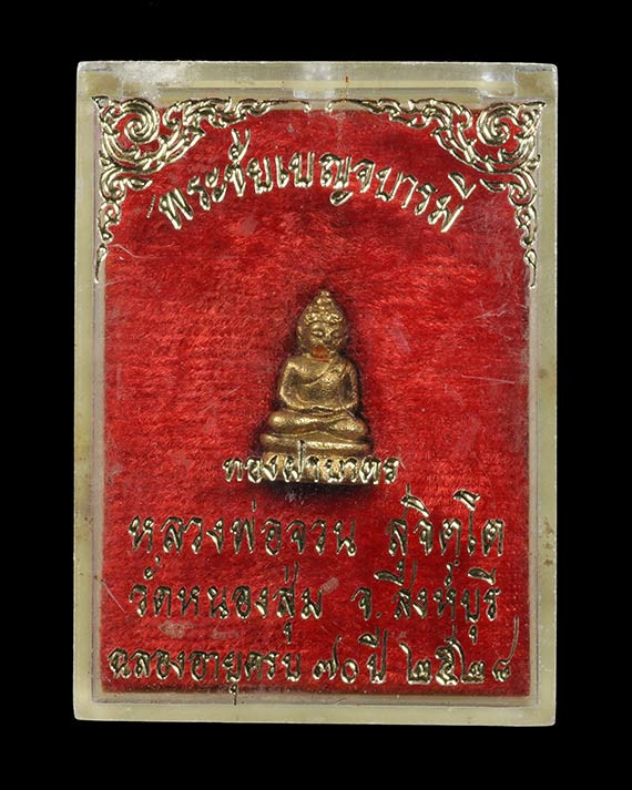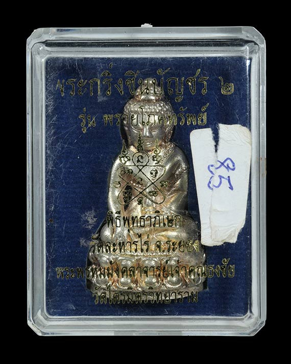 เคาะแรก พระกิ่งพรายบัวผุด เนื้อนวะหล่อโบราณ ก้นอุดเส้นผมและผงพรายกุมาร หมายเลข 2005 |