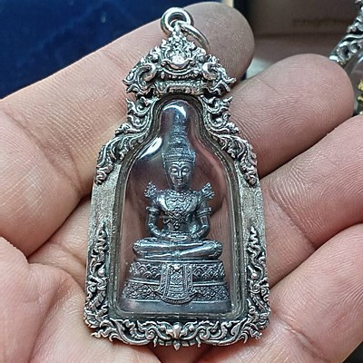 พระแก้วมรกต กรมสรรพสามิตจัดสร้าง วัดพระศรีรัตนศาสดารามเนื้อเงินสามกษัตริย์ โค๊ด 3 ปี 2539 พร้อมเลี่ยมกรอบเงินแท้ 92.5% ขึ้น งานมือ กรอบหนา รมดำ สวยๆ...พร้อมกล่อง |