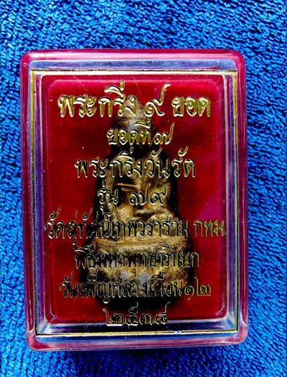 ชุดพระกริ่งและพระชัยวัฒน์ หลวงปู่คร่ำ วัดวังหว้า จ.ระยอง รุ่นสรงน้ำเสาร์ 5 พ.ศ.2537 เนื้อนวะโลหะเต็มสูตรก้นแผ่นเงิน ตอกโค๊ต ตอกเลข สภาพสวยนอนนิ่งกล่องกำะหยี่สีแดงเดิมๆ !! |