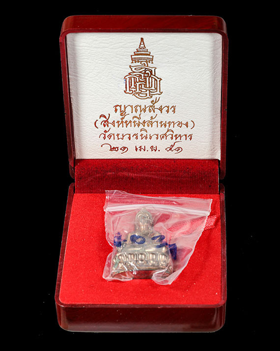 พระกริ่งมงคลบพิตร อนุสรณ์ครบรอบ90ปี อ.ย.ว. "เนื้อเงิน" มีกล่องใส่ให้ขณะขนส่ง |