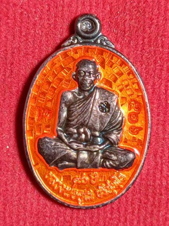 เหรียญเม็ดแตงหลวงพ่อคูณ รุ่นอายุยืน เนื้อเงินลงยา ปี2553 พร้อมเลี่ยม |