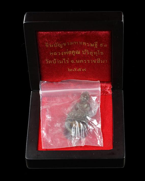 พระปิดตานวะมหามงคลหลวงพ่อคูณ แซยิด76ปี เนื้อผง+เกษา+ตะกรุดทองคำแท้+ผงตะไบพระกริ่ง วัดบ้านไร่ ปี 2542 |