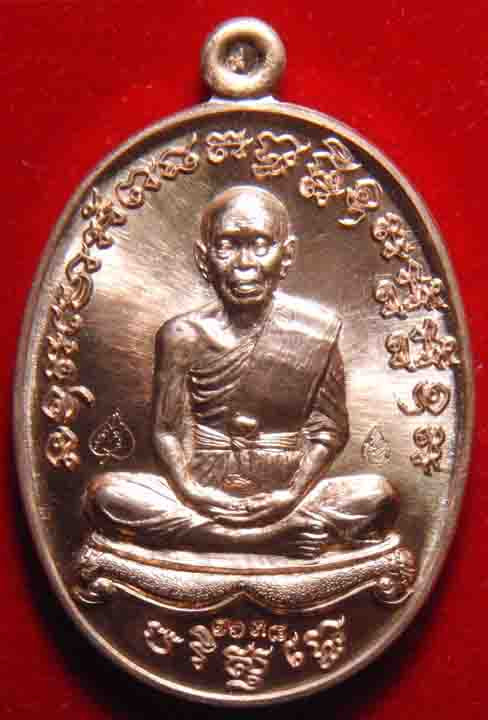 เหรียญหลวงพ่อคูณ วัดบ้านไร่ รุ่น มหาลาภ แจกทาน หน้าศรีนคร หลังรอบพระบาท ปี 2557 เนื้อทองฝาบาตร |