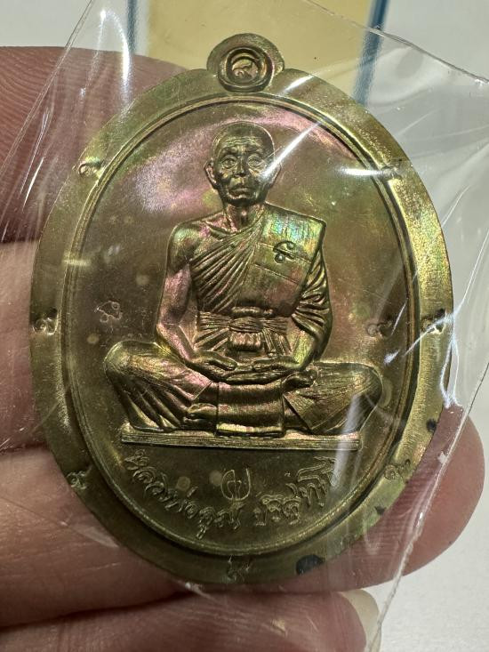 เหรียญอายุยืน คูณ สุคโต ปี2557 เนื้อนวะโลหะ ไม่ตัดปีก หลังยันต์ no.45 มีกล่อง |