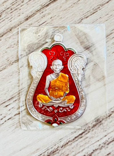 เหรียญหยดน้ำ รุ่นคูณเศรษฐี91 ปี2557 เนื้อเงิน ลงยาสีแดง no.110 มีกล่อง |