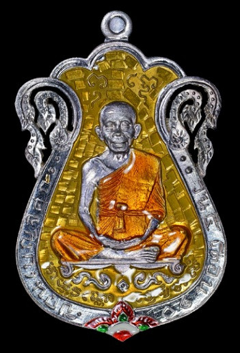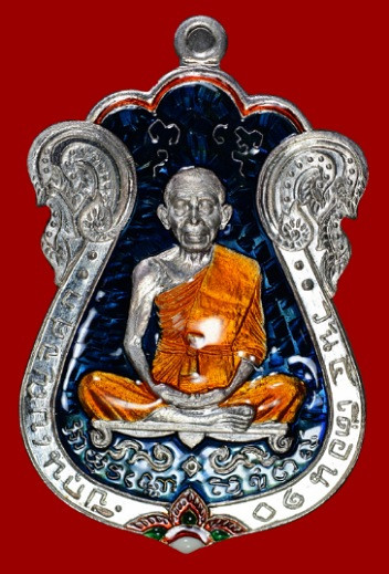 วัดใจ เหรียญเสมานั่งเต็มองค์ห่มคลุม รุ่น ประทานพร ปี57 เนื้อนวะหน้ากาเงินลงยา 3สี |