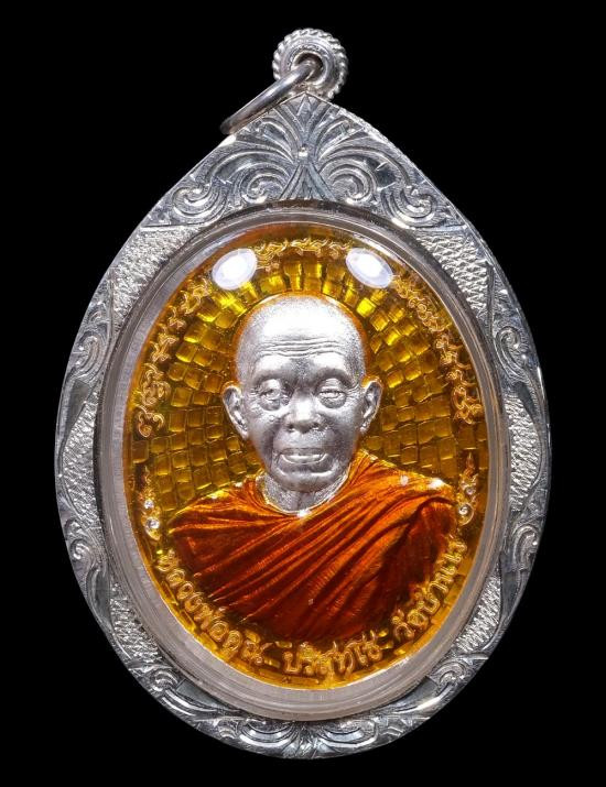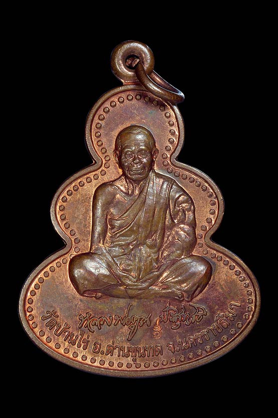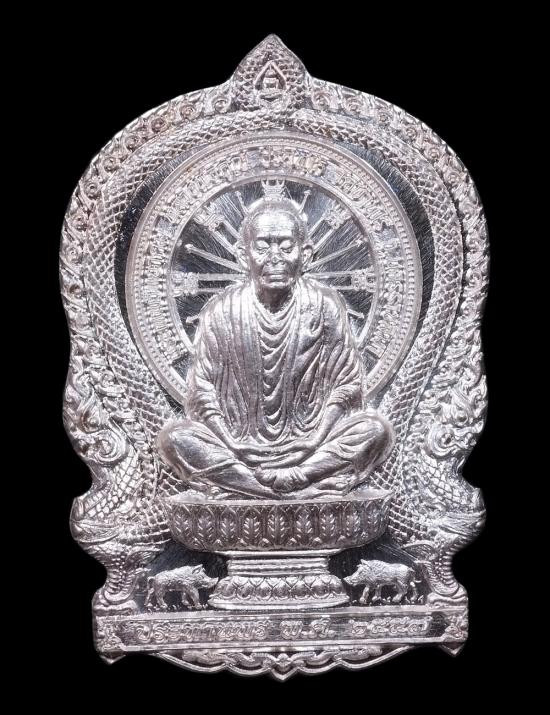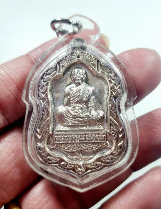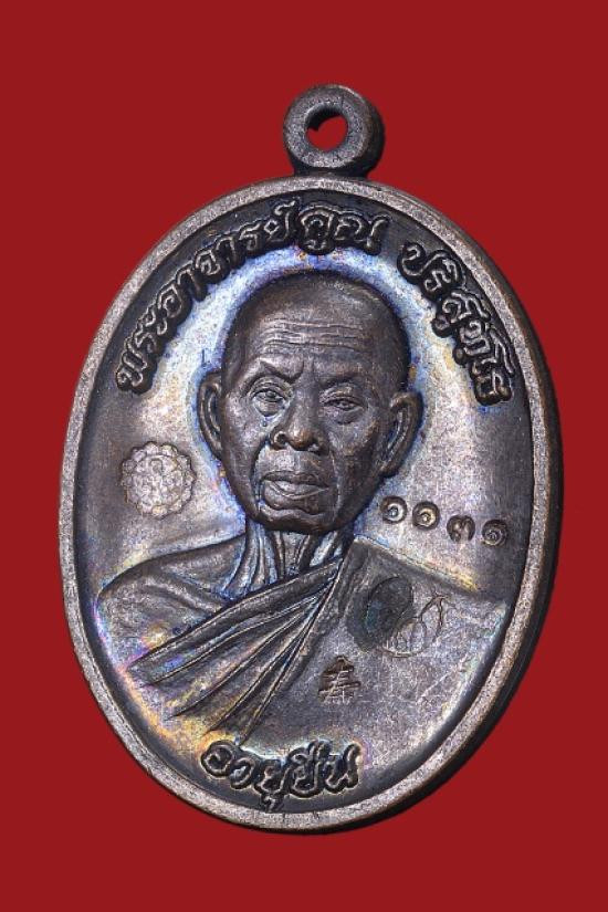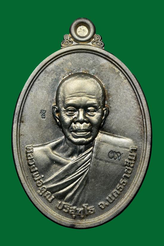 หลวงปู่คูณ ปริสุทโธ วัดบ้านไร่ อ.ด่านขุนทด จ.นครราชสีมา รุ่นเมตตา ห่มเฉียง เนื้ออัลปาก้า พร้อมเลี่ยมเงิน ปี 2555 |