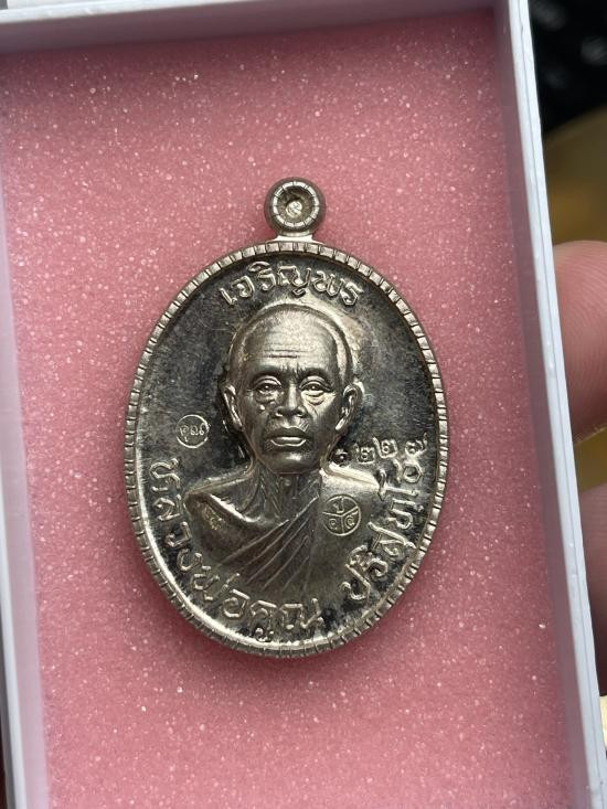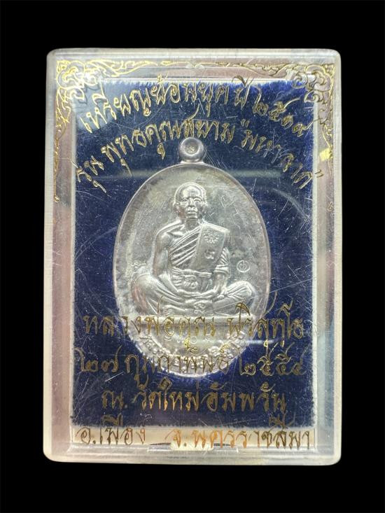 หลวงปู่คูณ ปริสุทโธ วัดบ้านไร่ อ.ด่านขุนทด จ.นครราชสีมา รุ่นเมตตา ห่มเฉียง พร้อมเลี่ยมเงิน ปี 2555 กล่องเดิม |