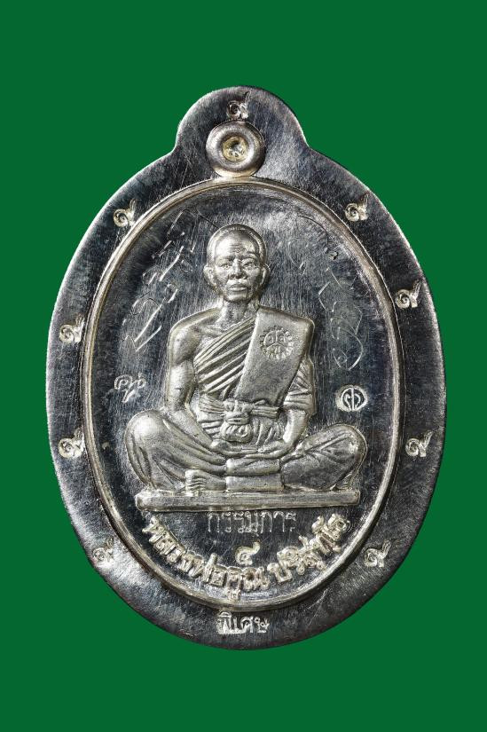 เหรียญอายุยืน๘๘ หลวงพ่อคูณ เนื้อเงินลงยา หลังแบบ ตะกรุดทองฝังแขน1ดอก โค๊ต ๙รอบ พิเศษ ๖๔ วัดแจ้งนอก ปี2553 ไม่มีกล่อง |