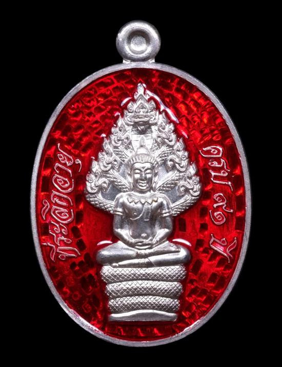 เหรียญพระนาคปรก มหาลาภ 91 หลวงพ่อคูณ ปริสุทโธ วัดบ้านไร่ เนื้อเงินลงยาสีแดง แดงเคาะแรก |