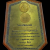 โล่รางวัลชนะเลิศงานประกวดพระเครื่อง ( ขนาด 5 x 6 นิ้ว ) ปลุกเสกโดย หลวงพ่อคูณ ( แผ่นไม้ , ทองเหลืองสกรีนตัวหนังสือ , ติดเหรียญ เฮงคูณเฮง 8 ทิศ และ เหรียญธรรมจักร ) พ.ศ.2541 ** 1 ** |