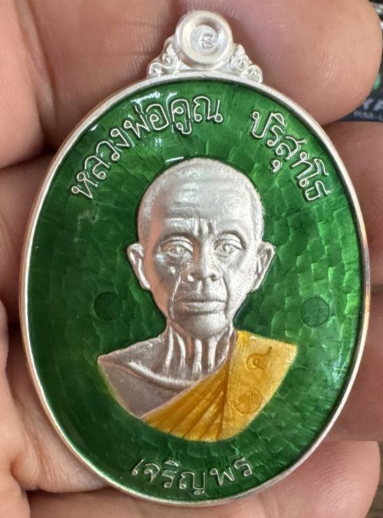 เหรียญ หลวงพ่อคูณ ปริสุทฺโธ เหรียญจัมโบ้รุ่นเจริญพรล่าง91 เนื้อเงินลงยาสีเขียว หมายเลข4 มีกล่องครับ(น้ำหนักเงินหนัก28.2กรัม) |