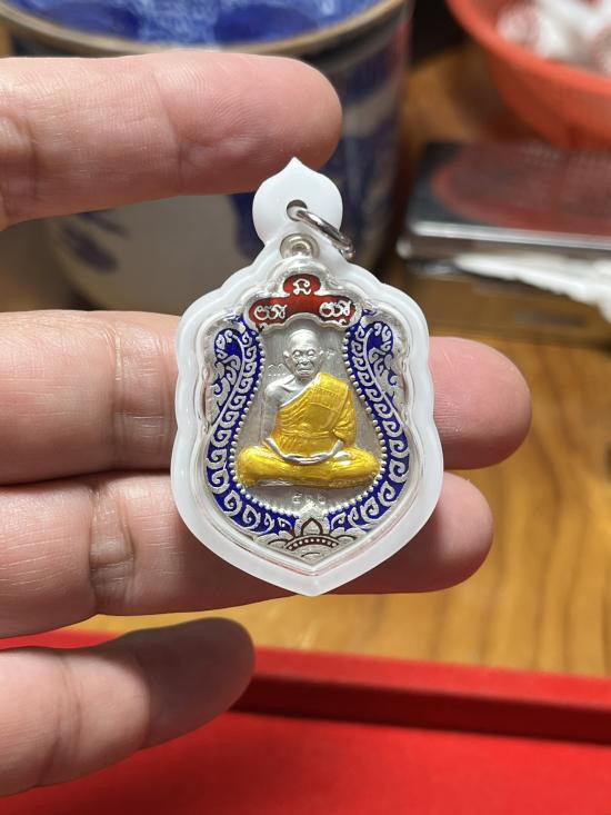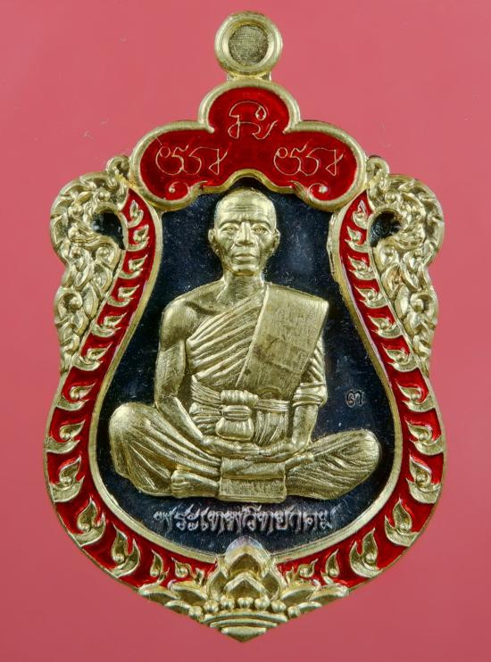 "วัดใจ" เหรียญเสมาฉลุ ยกองค์ เลื่อนสมณศักดิ์ พระเทพวิทยาคม เนื้อทองแดงลงยาจีวร สภาพสวยเดิมพร้อมกล่องเดิม หมายเลข ๑๑๕๙ |
