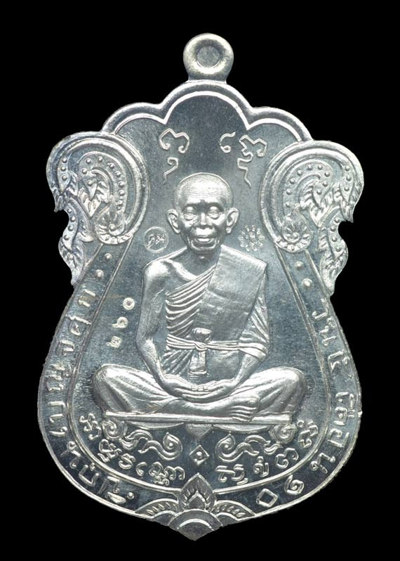 เหรียญเสมาฉลุมือ รุ่น"เศรษฐี" หลวงพ่อคูณ ปี55 เนื้อเงินลงยา หมายเลข 199 |