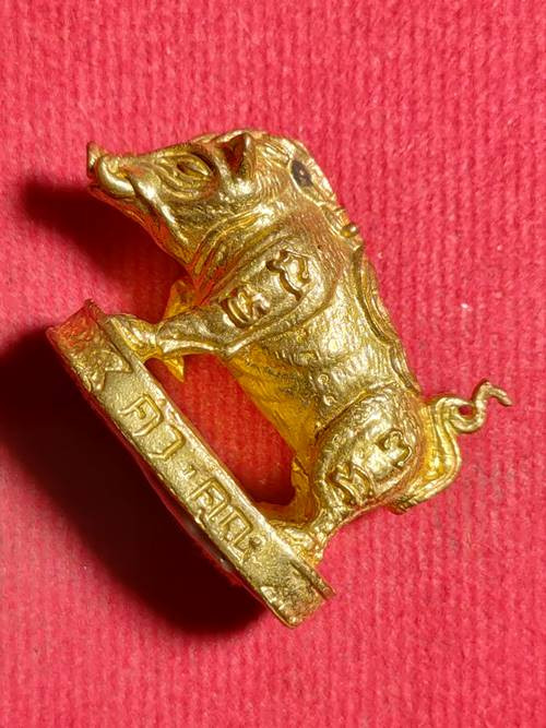 หมูมหามงคลคูณทอง หลวงพ่อคูณ ปริสุทโธ ออกวัดบ้านไร่ ปี 53 เนื้อ ทองฝาบาตรอุดมวลสารฝังตะกรุดติดจีวร+เกศา หมายเลข 2514 สภาพสวย เคาะเดียวแดง |