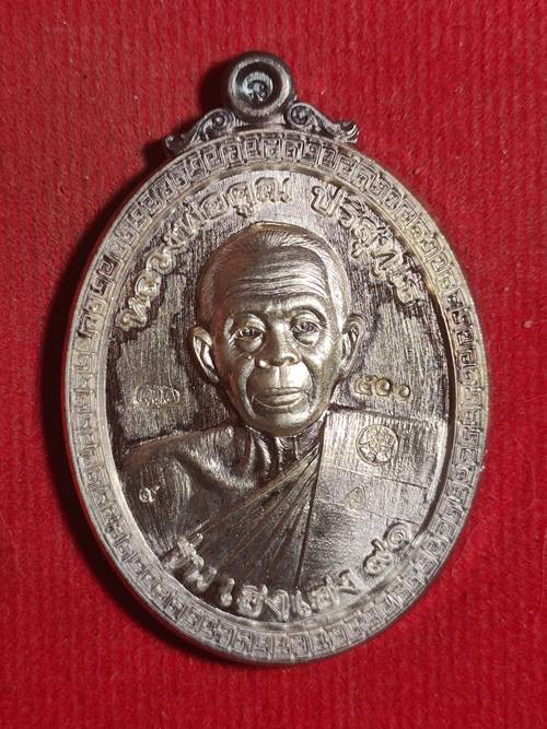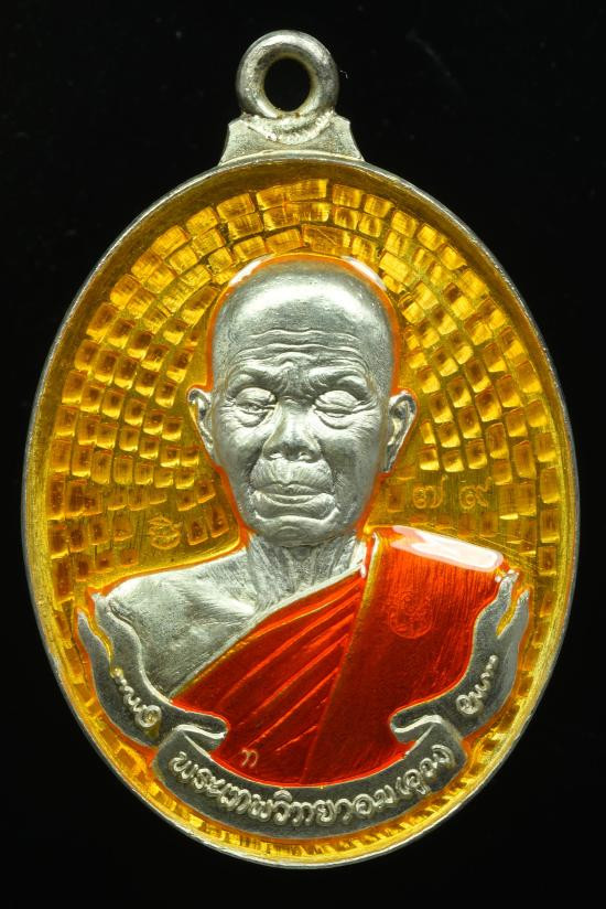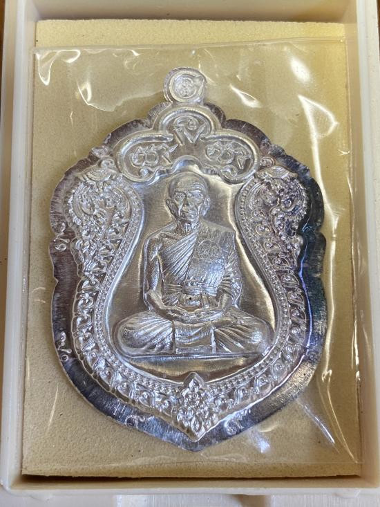 เหรียญเจริญพรบน92 ปี2557 (นำฤกษ์) พิมพ์2หน้า เนื้อเงิน ลงยาสีแดง no.20 มีกล่อง |