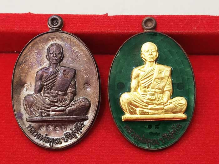 เหรียญนั่งพานบูชาคูร ไหล่เงินลงยาสามสี ชุดของขวัญ |