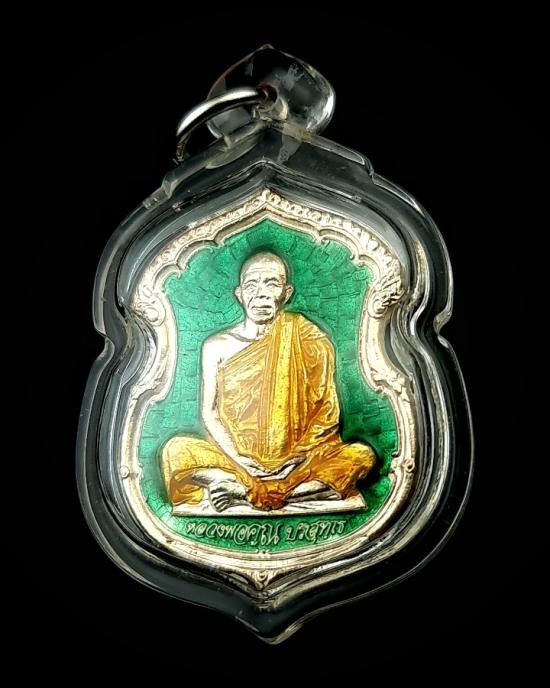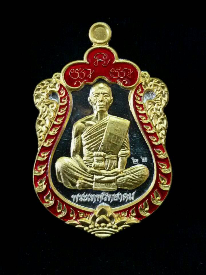 เหรียญรุ่น1 กายเทพ ออกวัดตะครองงาม ปี 2556 เนื้อเงินลงยาหน้ากากทองคำ |