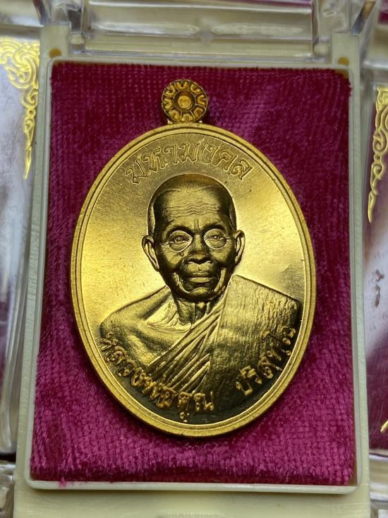 เหรียญพิเศษย้อนยุค ปี 19 รุ่นพระเทพวิทยาคม(คูณ) บารมี 91 เต็มองค์ ติดผ้าจีวร กล่องเดิม กรอบทองไมคอน |