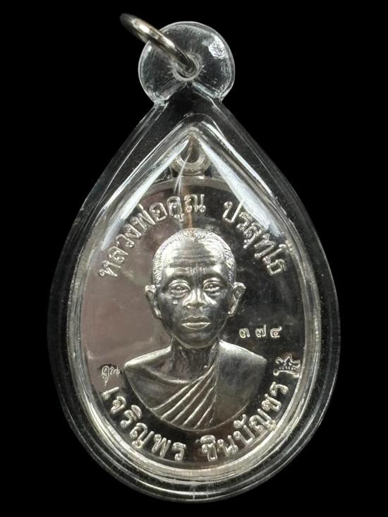 หลวงพ่อคูณ วัดบ้านไร่ รุ่นมหาลาภแจกทาน เหรียญครึ่งองค์หน้าเจริญพร ตอกเลข 1595 ปี2558 (1) |