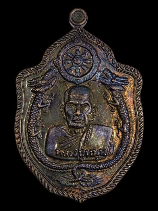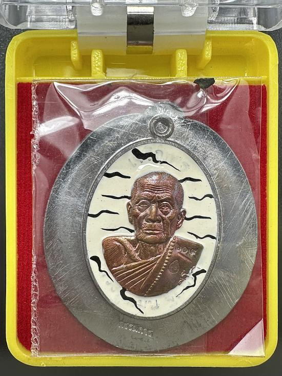 เหรียญบูชาครู 62 หลวงปู่หมุน ฐิตสีโล รุ่น เจริญพร พิธีพุทธาภิเษก ณ อุโบสภวัดบ้านจาน จ.ศรีสะเกษ ปี 2562 เนื้อ ตะกั่วลงยาลาย เสือเบนส์กอไม่ตัดปีกหลังเรียบ หน้ากากทองชนวน หมายเลข 209 กรรมการ พร้อมกล่อง |